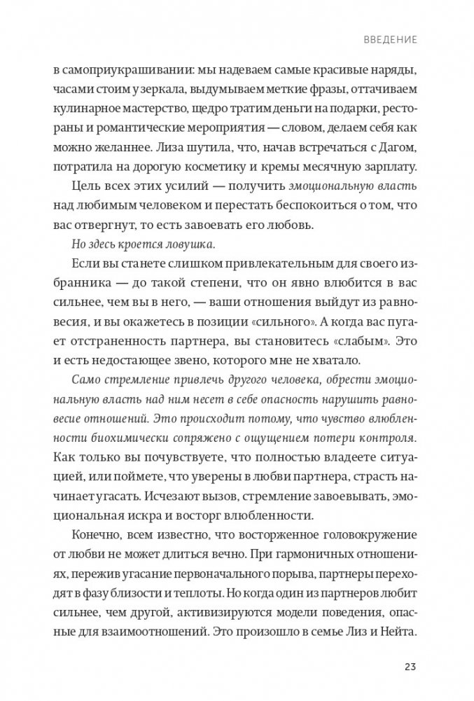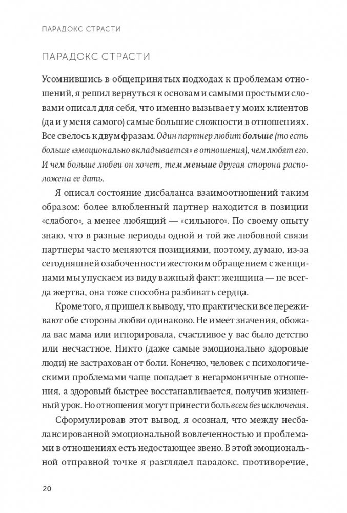 Известный психолог Дин Делис рассказывает, как проверить, есть ли в ваших отношениях "парадокс страсти", и как изменить шаблоны поведения, угрожающие вашему союзу. "Уловка" романтических отношений заключается в следующем: когда один из партнеров любит все сильнее и сильнее, чувства другого затухают. Чем больше жаждет любви первый, тем меньше её готов отдавать другой. Это парадокс страсти, психологическое явление, которое происходит каждый раз, когда равновесие в отношениях нарушается. Важно, что и мужчина, и женщина могут исполнять любую из ролей в этой ловушке — и "ведущего", и "ведомого". Известный психолог Дин Делис уверен: "ловушка страсти" — не только распространенное явление, но и исправимое. Его рекомендации, проверенные многолетним опытом работы с парами, помогут вам и вашему партнеру найти новое равновесие в отношениях, вернуть в них романтику и страсть и создать долговременный равноправный союз. О серии: Новая яркая cepия бecтceллepoв МИФа, пpoдaнных тиpaжом бoлee 1,5 млн экземпляров. Книги изданы в удобном формате покетбука и стильном дизайне. В серию входит более 50 самых популярных книг по саморазвитию, психологии, бизнесу.