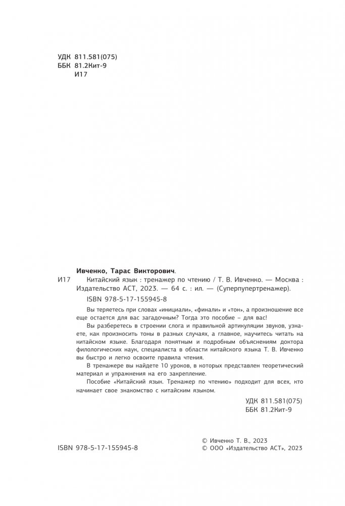 Пособие "Китайский язык. Тренажер по чтению" подходит для всех, кто начинает свое знакомство с китайским языком.