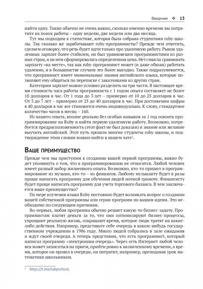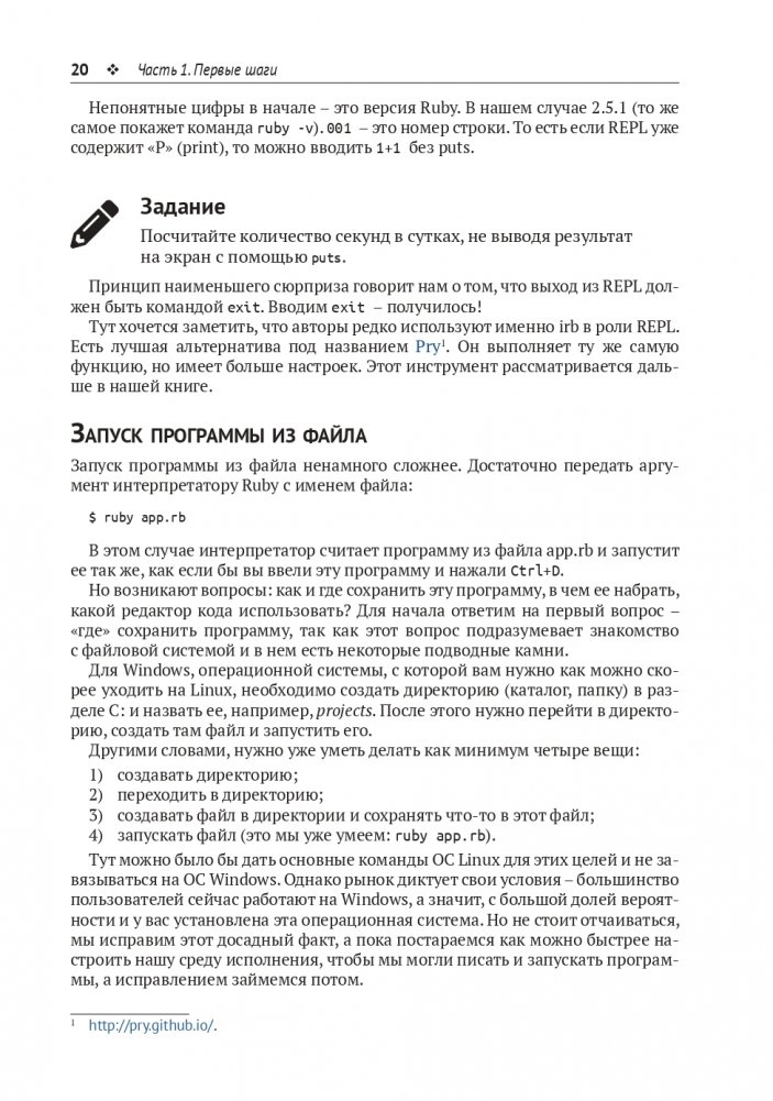 Перед вами книга для самостоятельного знакомства с основами языка Ruby для начинающих разработчиков любого возраста. Последовательное изложение материала позволит не только освоить тонкости языка в удобной игровой форме, но и заложить твердый фундамент для дальнейшего обучения. Многочисленные советы, хитрости и приемы основаны на более чем двадцатилетнем опыте работы автора в российских и зарубежных компаниях - для многих учеников эта книга стала первым шагом на пути смены карьеры. Упражнения и задания, а также многочисленные иллюстрации помогут во всех тонкостях освоить материал.