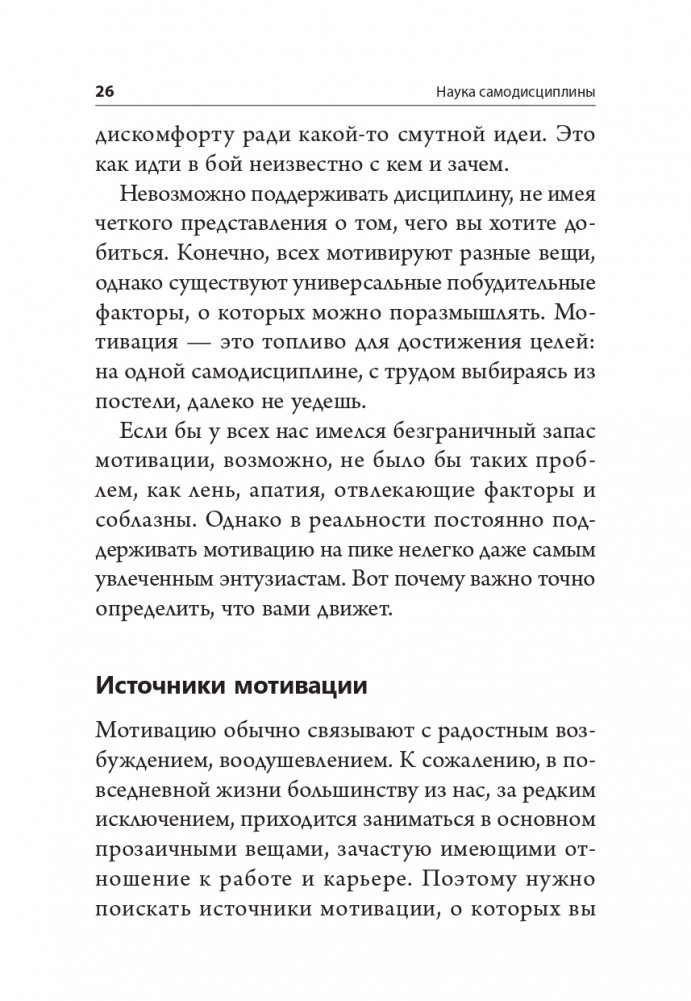 «Наука самодисциплины» — это не просто книга. Это дорожная карта человеческой психики, которая кардинально изменит вашу жизнь. Когда вы поймете истинные причины своих импульсивных желаний и истоки силы воли, то сможете справиться с временным дискомфортом и сфокусироваться на том, что действительно важно. Питер Холлинс, практикующий психолог с большим опытом, просто и доходчиво объясняет, почему, поставив крест на сиюминутных отговорках, оправданиях, искушениях и лени, вы сможете рассчитывать на гораздо большие призы в будущем.
