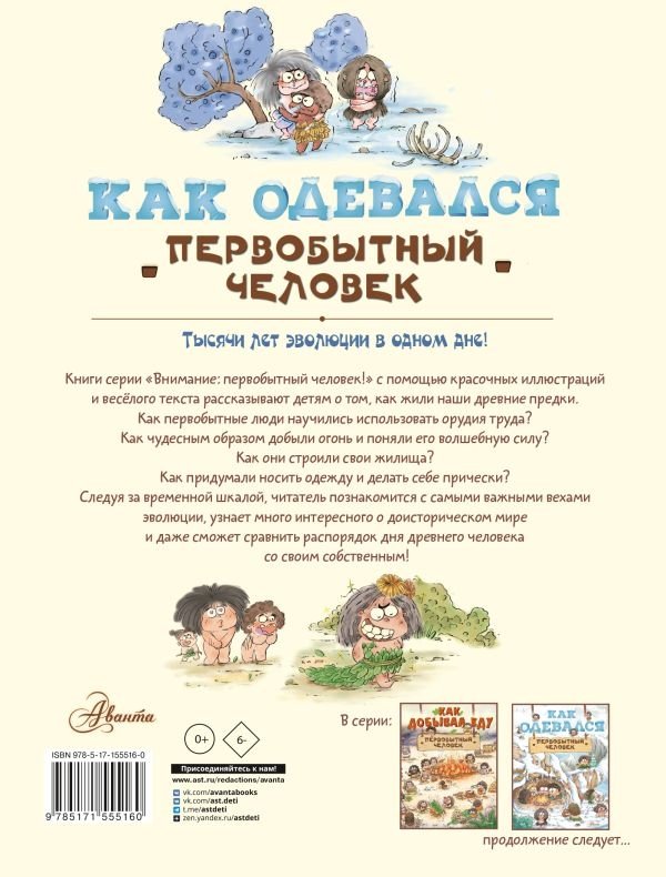 Серия книг "Внимание: первобытный человек!" с помощью ярких иллюстраций и увлекательного текста рассказывает об одежде, питании, жилье и занятиях первобытных людей.