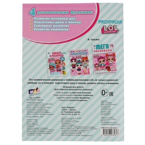 Раскраска «ЛОЛ» ТМ «УМка» для юных художников.