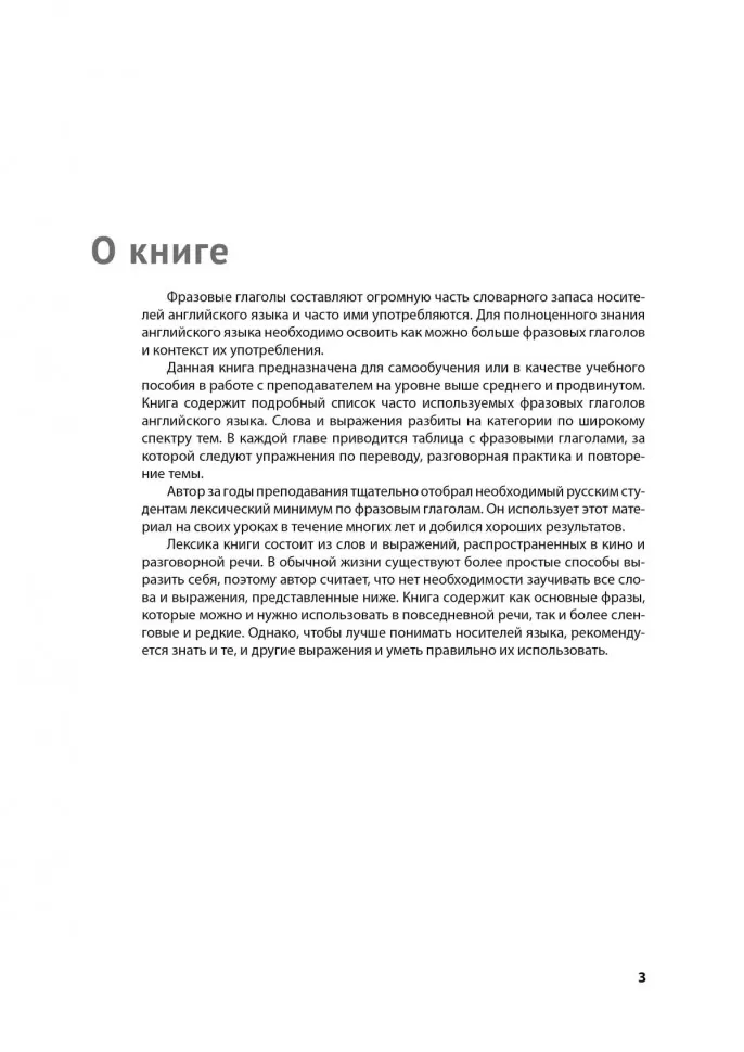 Фразовые глаголы составляют важнейшую часть словарного запаса и часто употребляются носителями языка. Пособие научит понимать и использовать актуальные значения фразовых глаголов в контексте живой речи. Материал отрабатывается на конкретных примерах и закрепляется в многочисленных и разнообразных упражнениях. В конце книги - дополнительные тесты и ключи для самопроверки.