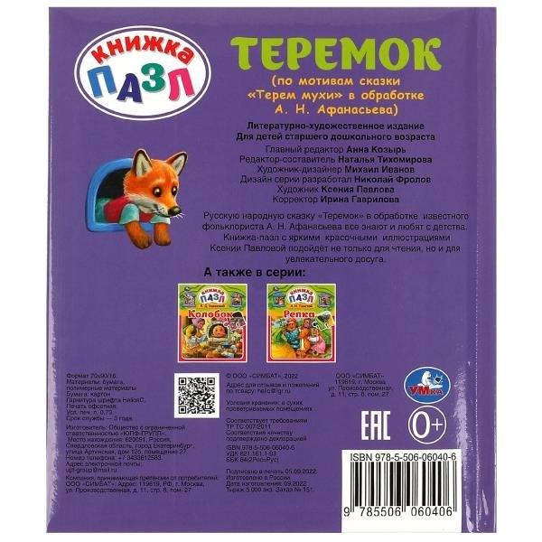 Теремок. Книга-пазл А4. 5 пазлов