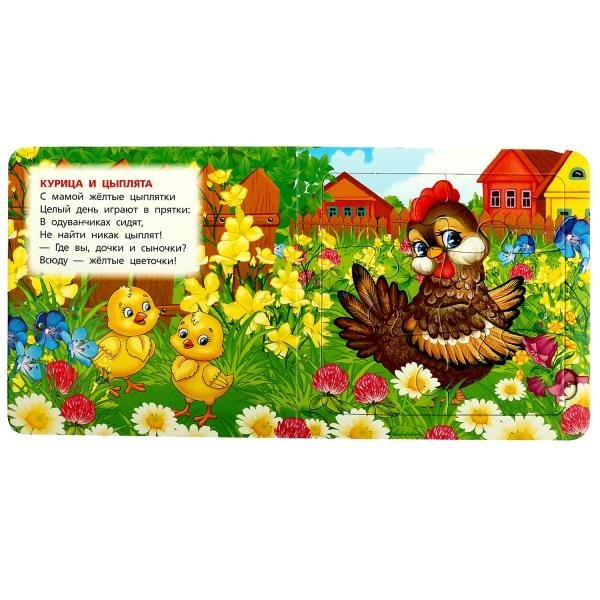 Данная книга выполняет сразу 2 функции: это и книга для чтения, и игра в пазлы. На каждом развороте малыша ждёт интересный стих Марины Дружининой, а также яркий пазл с изображением животных - мам и их детёнышей. Книжка изготовлена из плотного картона, поэтому мамы могут не опасаться, что ребёнок порвёт странички. Благодаря удобному формату книгу можно взять с собой в дорогу.