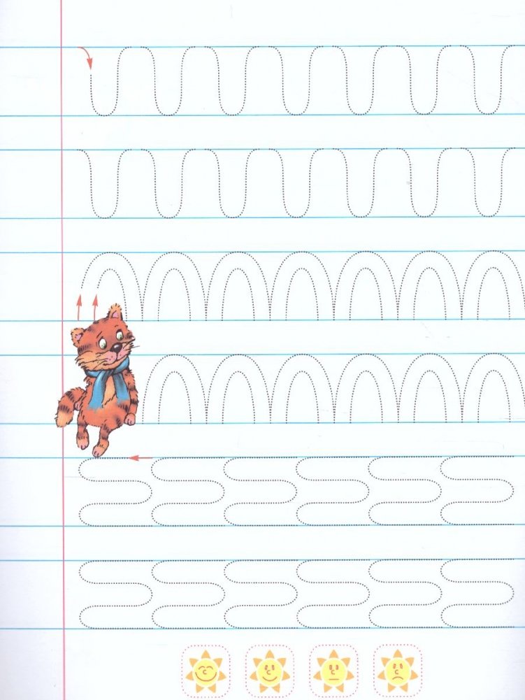 Эти прописи помогут ребёнку в игровой форме развить зрительное восприятие, внимание, мелкую моторику и координацию движения руки. Чтобы малыш не уставал, прописи не перегружены упражнениями, графические элементы даны в увеличенном виде, а на разворотах расположены забавные рисунки, связанные с выполняемыми заданиями. Стрелки указывают начало действия при выполнении упражнения. Занимайтесь с ребёнком не более 20-25 минут.