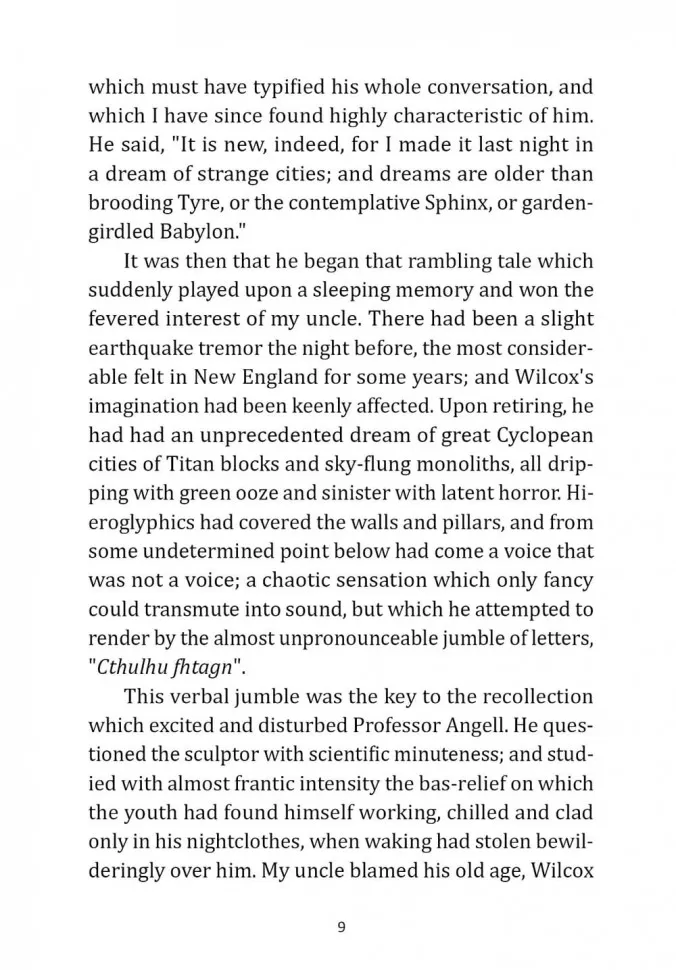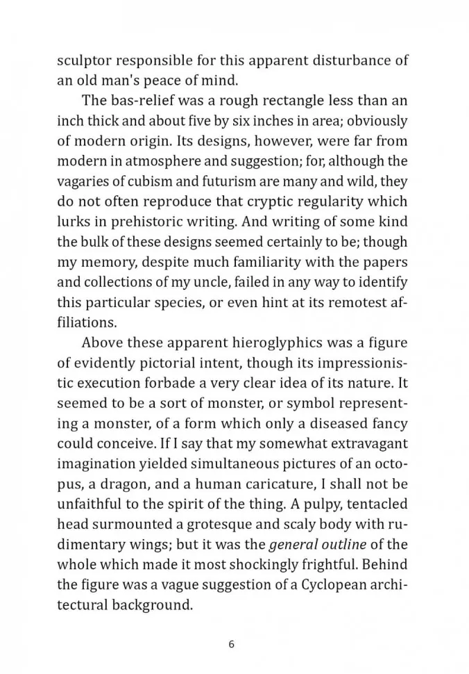 Перед вами сборник коротких рассказов знаменитого писателя-мистика Говарда Филлипса Лавкрафта. Эти истории положили начало целой литературной вселенной, названной "Мифами Ктулху". Огромная и загадочная вселенная Лавкрафта, нашедшая столько ярых поклонников и почитателей по всему миру, захватывает и очаровывает всех любителей мистики и фантастики. Последователи писателя дополняют "Мифы Ктулху" новыми книгами, фильмами и компьютерными играми. Вселенная ужасов Лавкрафта - жемчужина мировой культуры и актуальный мейнстрим нового века.