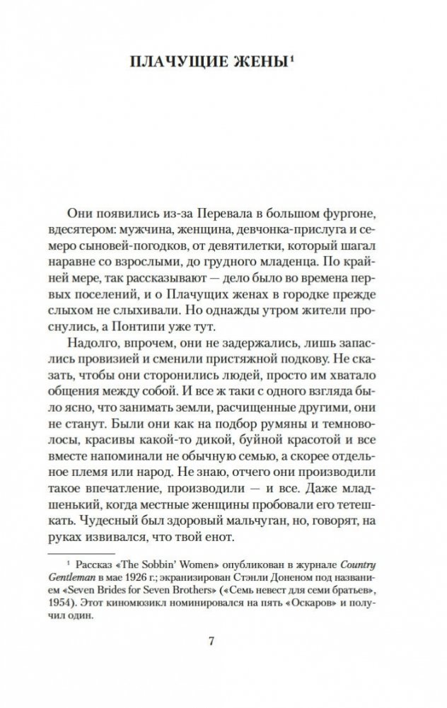 Стивен Винсент Бене — классик американской литературы, плоть от плоти того ярчайшего поколения, что дало нам Фицджеральда, Хемингуэя и Фолкнера. Как мастер парадоксально-иронической новеллы, он несомненно наследует О. Генри, часто использует исторические, фольклорные и фантастические сюжеты. Далекое или недавнее прошлое предстает у него ожившим царством фантазии. Здесь на американском фронтире разыгрываются сюжеты античной мифологии, доктор Мелхорн продолжает свою врачебную практику в преисподней, Вождь великой Державы отправляет в изгнание Про`клятый народ до последнего младенца, и последний римский легион покидает Британские острова, к ужасу колонистов... Рассказ «Плачущие жены», открывающий сборник, послужил основой для знаменитого киномюзикла Стэнли Донена «Семь невест для семи братьев», номинированного на пять «Оскаров» и получившего один. Все произведения публикуются на русском впервые (за исключением одного рассказа, представленного в новом переводе).