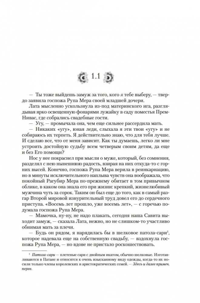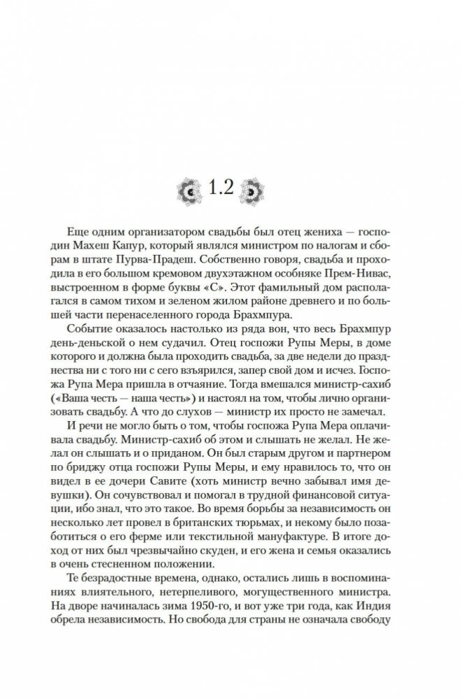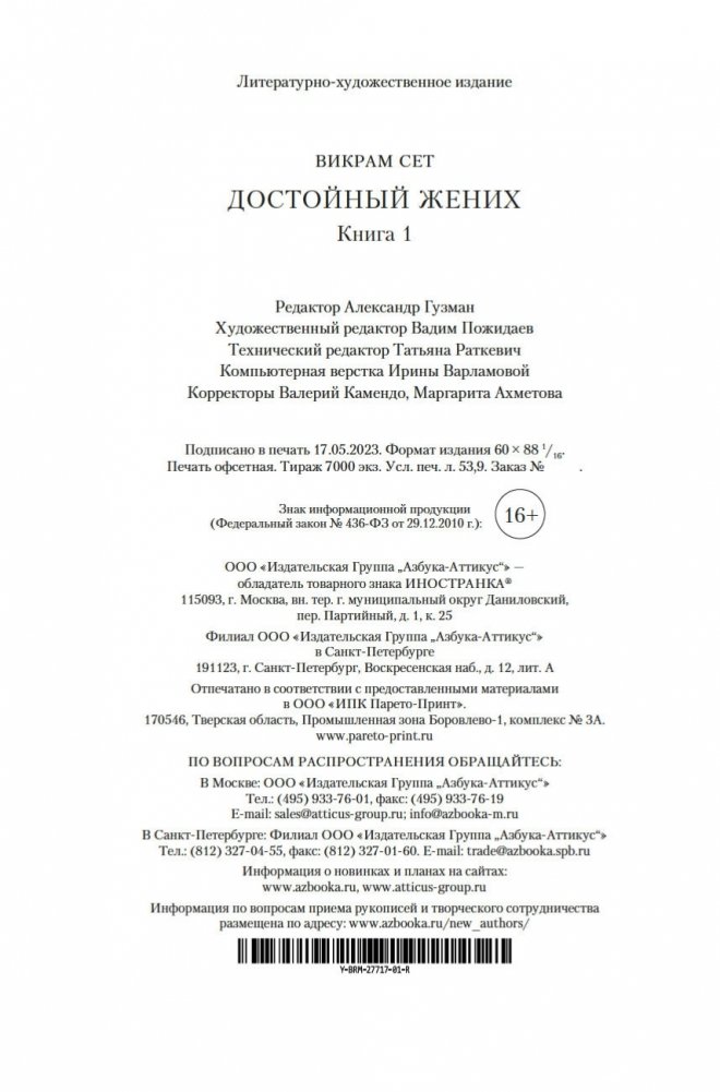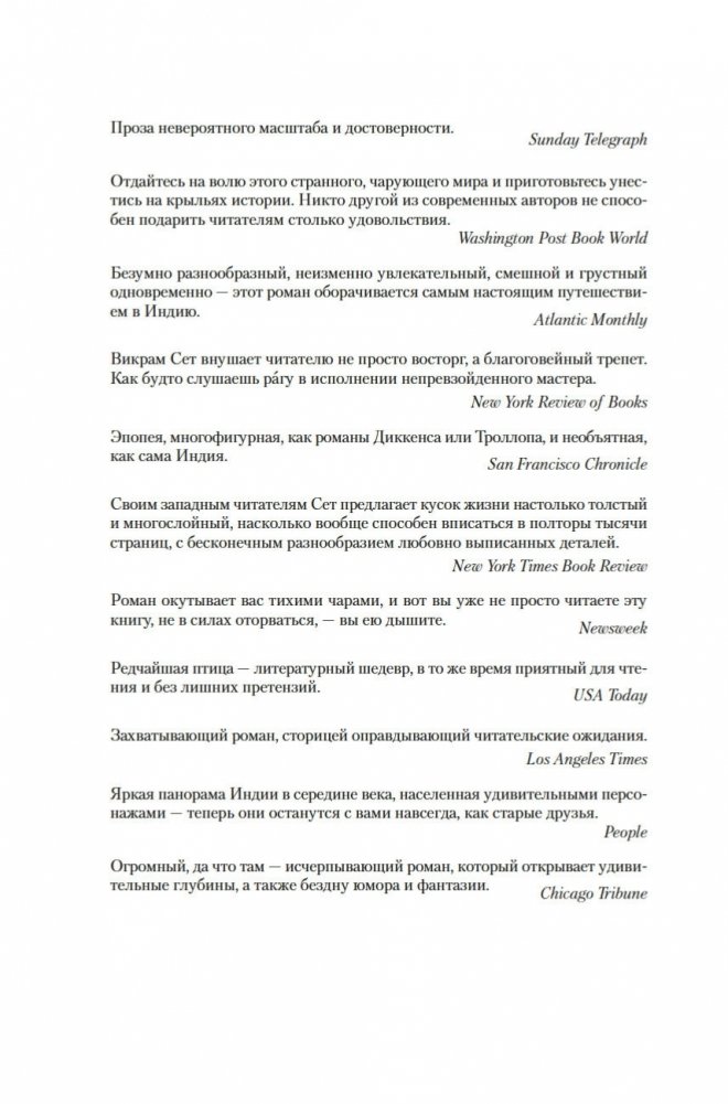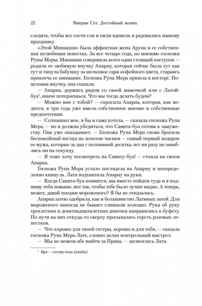 Современный классик Викрам Сет — настоящий гражданин мира. Родился в Индии, учился в Оксфорде, а также в Стэнфордском университете в Калифорнии, где вместо диссертации по экономике написал свой первый роман «Золотые Ворота» об американских яппи — и это был роман в стихах; более того, от начала до конца написанный онегинской строфой. А через много лет работы вышел и «Достойный жених» — «эпопея, многофигурная, как романы Диккенса или Троллопа, и необъятная, как сама Индия» (San Francisco Chronicle), рекордная по многим показателям: самый длинный в истории английской литературы роман, какой удавалось опубликовать одним томом; переводы на три десятка языков и всемирный тираж, достигший 26 миллионов экземпляров. Действие происходит в вымышленном городе Брахмпур на берегу Ганга вскоре после обретения Индией независимости; госпожа Рупа Мера, выдав замуж старшую дочь Савиту, пытается найти достойного жениха для младшей дочери, студентки Латы, — а та, как девушка современная, имеет свое мнение на этот счет и склонна слушать не старших, а собственное сердце... В 2020 году первый канал Би-би-си выпустил по роману мини-сериал, известный по-русски как «Подходящий жених»; постановщиком выступила Мира Наир («Ярмарка тщеславия», «Нью-Йорк, я люблю тебя»), а сценарий написал прославленный Эндрю Дэвис («Отверженные», «Война и мир», «Возвращение в Брайдсхед», «Нортенгерское аббатство», «Разум и чувства»).