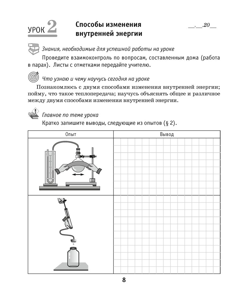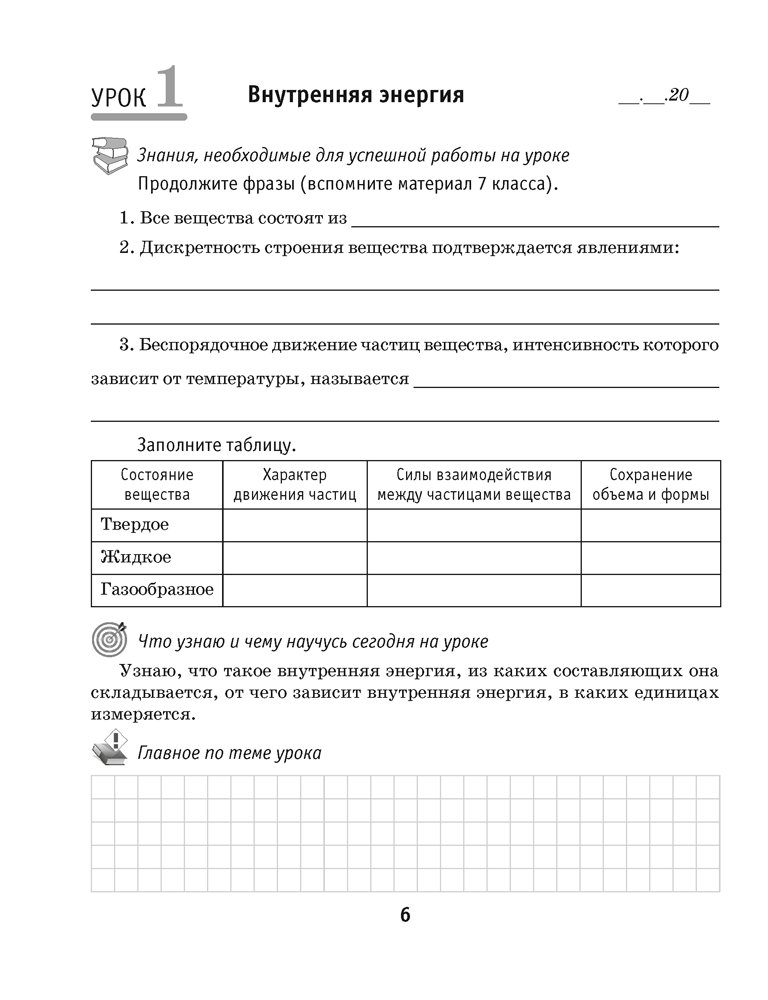 Издание составлено в соответствии с программой и учебным пособием по физике для 8 класса и включает весь необходимый теоретический и практический материал для изучения предмета. Использование тетради сокращает и облегчает труд ученика при оформлении работ, а учителя — при их проверке, освобождает время для выполнения творческих заданий.