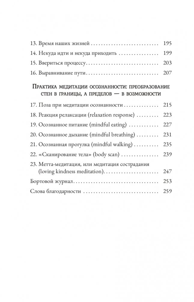 Во время такой медитативной практики вы будете с открытым сознанием и интересом наблюдать за собственным потоком мыслей, ощущений и чувств, что позволяет выйти за рамки догм и проникнуть в новый мир возможностей. Ведь достичь невозможного могут лишь те, кто видит невидимое. Если вы хотите научиться превращать проблемы в фундамент для личностного роста, развития и трансформации, эта книга для вас. Медитация осознанности также поможет улучшить здоровье, справиться со стрессом, тревогой, депрессией и повысить креативность.
