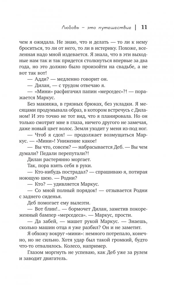 Накануне свадьбы общей подруги их пути снова пересекаются, точнее – сталкиваются: в самом начале путешествия в Шотландию машина Дилана и его друга Маркуса врезается в ту, где едут Адди и ее попутчики. Так что компанию ждет совместная поездка в "мини купере" полном багажа, прошлых обид, разочарований, неловкости и секретов.