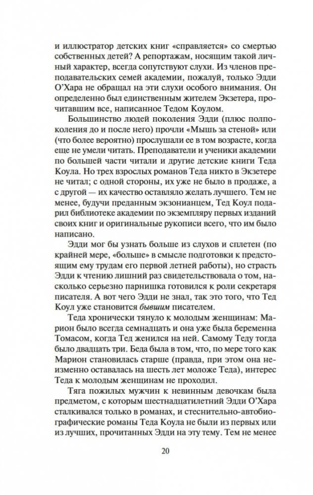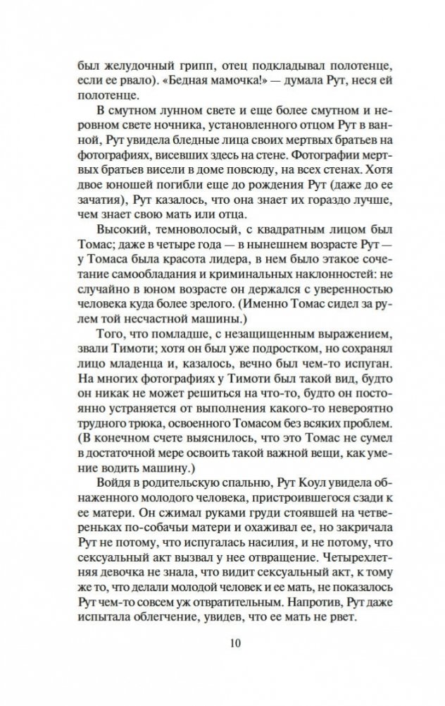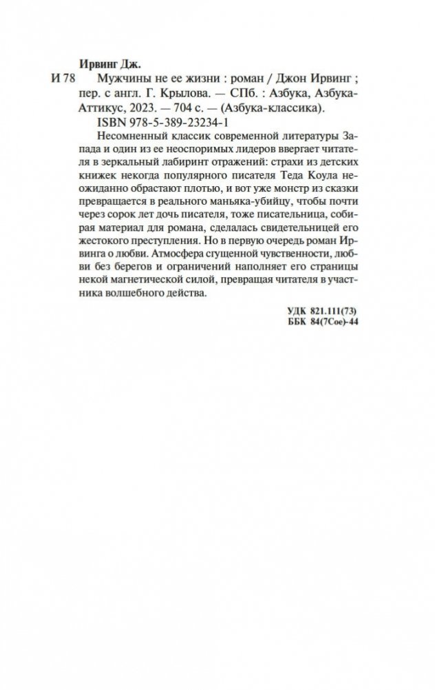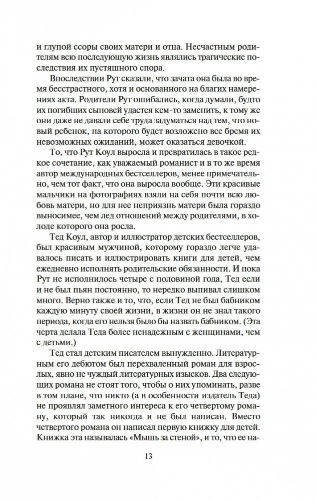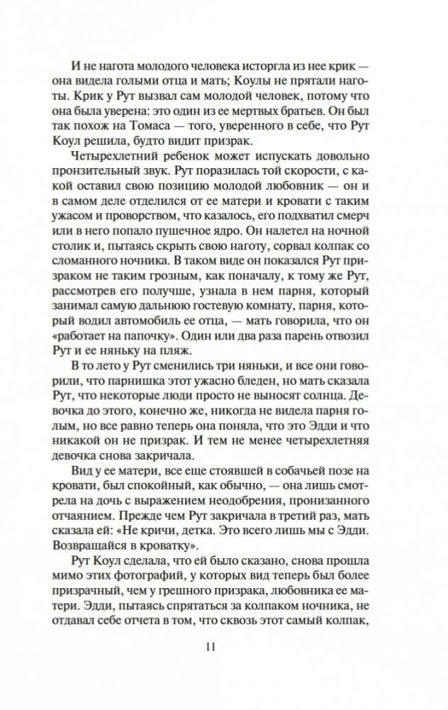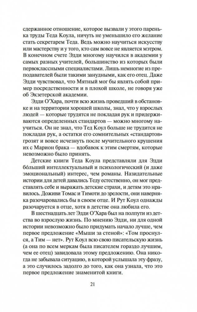 Несомненный классик современной литературы Запада и один из ее неоспоримых лидеров ввергает читателя в зеркальный лабиринт отражений: страхи из детских книжек некогда популярного писателя Теда Коула неожиданно обрастают плотью, и вот уже монстр из сказки превращается в реального маньяка-убийцу, чтобы почти через сорок лет дочь писателя, тоже писательница, собирая материал для романа, сделалась свидетельницей его жестокого преступления. Но в первую очередь роман Ирвинга о любви. Атмосфера сгущенной чувственности, любви без берегов и ограничений наполняет его страницы некой магнетической силой, превращая читателя в участника волшебного действа.