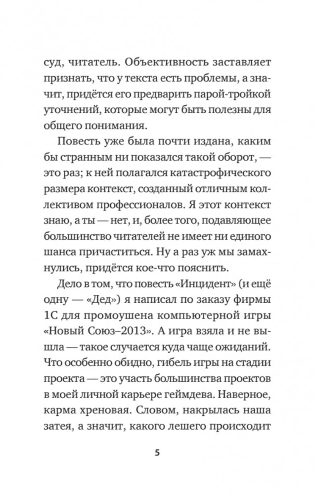 1963 год. Страна восстанавливается после ядерной войны. На одной из строек в аномальной зоне, объекте «Кольцо», внезапно пропала связь. Что это - воздействие внешних сил, человеческий фактор или эксперименты сверхсложной самообучающейся машины «Сетунь», которая руководит работами? Выяснить причины отправляется комиссия во главе с майором Тором Игоревичем Карибским. Майору придется принять непростое решение – самое главное в своей жизни. Какое чудо явил человек неожиданному противнику? Кому и зачем понадобилось проводить чудовищные эксперименты на людях? И может ли машина стать человеком? Обо всем этом читайте в фантастической повести «Инцидент».