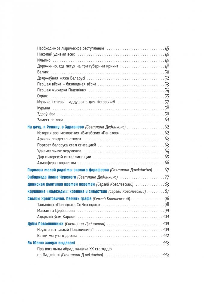 В основе книги — путевой очерк «400 километров по Янтарной реке», написанный по следам уникальной экспедиции от истока реки Западная Двина до Витебска. В собранных материалах содержится описание природных и климатических особенностей верховья Западной Двины, увлекательно рассказывается об известных личностях и наших современниках, публикуются исторические факты из жизни придвинской глубинки.