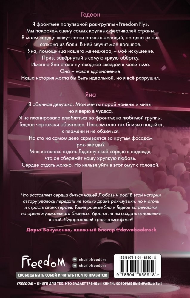 Рок-музыка, любовь, огонь, жгучая страсть, адреналин — дебютный роман Айли Фриман теперь издается в Freedom! Для всех поклонников творчества Эммы Скотт, любовных романов Тилли Коул и Бриттани Ш. Черри.