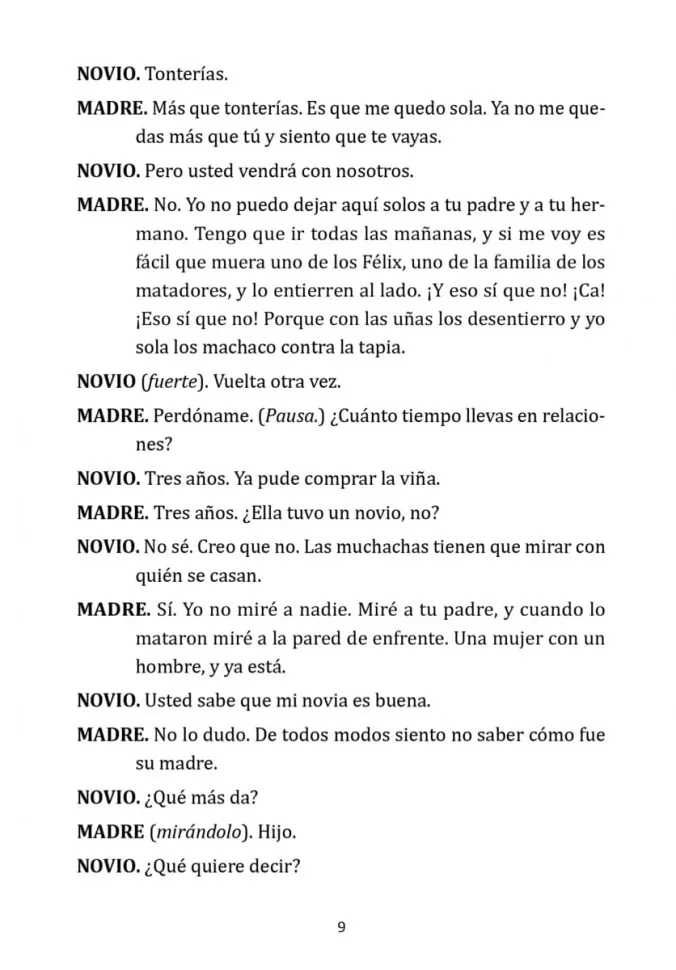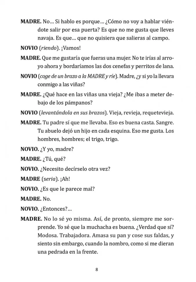 Федерико Гарсиа Лорка — великий испанский поэт и драматург, реформатор испанского театра. Пьесы «Кровавая свадьба», «Йерма» и «Дом Бернарды Альбы» — драматическая трилогия об испанской земле, «о жгучем противоборстве страстей» и о крушении надежд женщин, главных героинь всех трех произведений. Андалусия — край не только тенистых садов, виноградников, оливковых рощ, но и область бесплодных степей и скалистых пустынь. Мотив женитьбы в трагедиях увязывается с мотивами земли, плодородия и социального равенства.