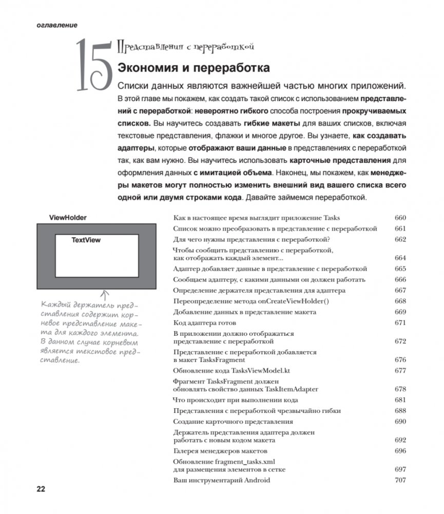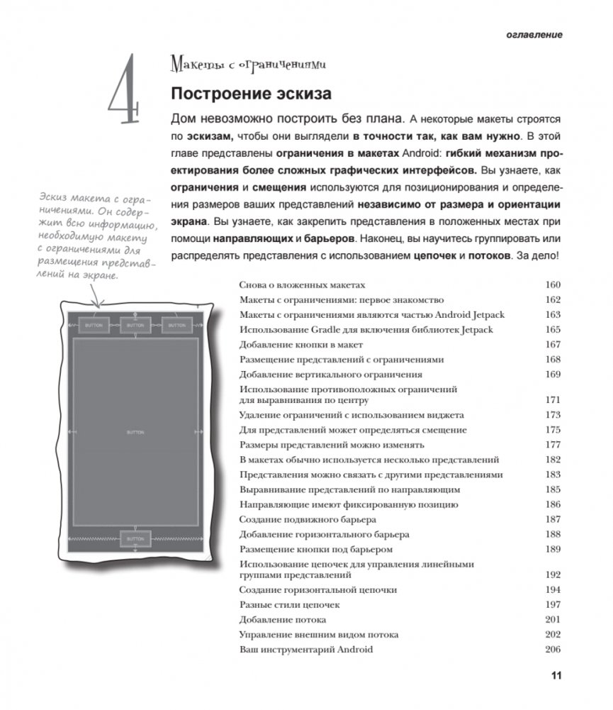 Эта полностью переработанная и обновленная книга поможет сразу приступить к работе. Вы на практике узнаете, как структурировать приложение, создавать гибкие и интерактивные пользовательские интерфейсы, сохранять информацию в базе данных и использовать новейшие возможности Android Jetpack и Jetpack Compose. Все, что вам нужно для успешного старта — это немного базовых знаний о языке Kotlin.