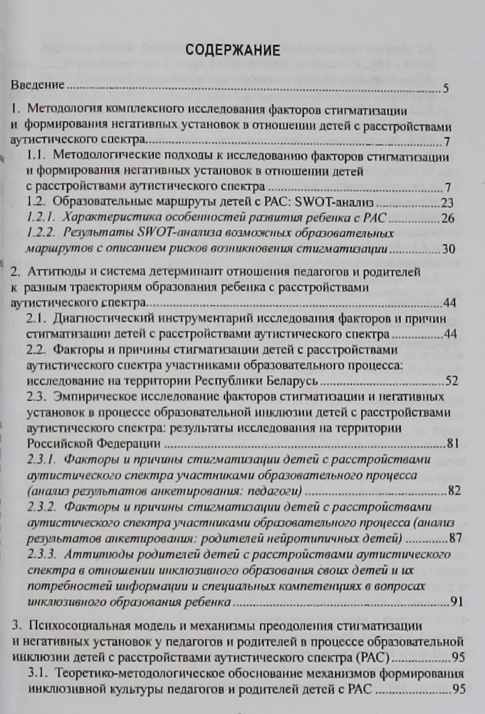 В монографии рассматривается психосоциальная модель преодоления стигматизации и негативных установок у педагогов и родителей в процессе образовательной инклюзии детей с расстройствами аутистического спектра (РАС), предлагаются механизмы и инструменты ее реализации. Предложен диагностический инструментарий исследования факторов и причин стигматизации детей с РАС, а также инклюзивной культуры родителей, воспитывающих детей с РАС, и педагогов, работающих с данной категорией детей.