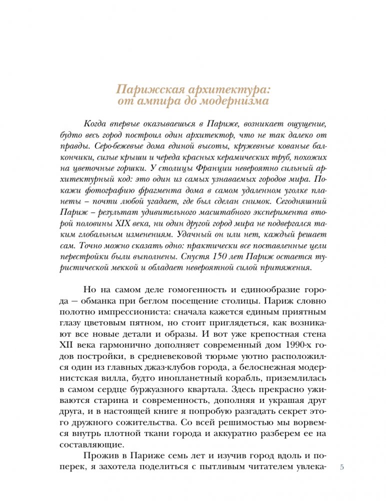 Задумались ли вы, как много можно узнать о европейской истории и развитии архитектуры, просто прогуливаясь по улицам Парижа? Перестроенный с нуля, сегодняшний Париж — результат масштабного эксперимента второй половины XIX века. Лучше всех об этом сможет поведать архитектурный гид и автор телеграм-канала «А как там в Париже?», специалист по творчеству Ле Корбюзье, Мария Троицкая. Прочитав эту книгу, вы не только начнете разбираться в архитектурных стилях, но и узнаете, какие процессы в обществе движут архитектурной модой.