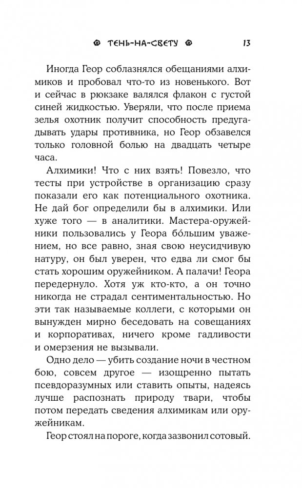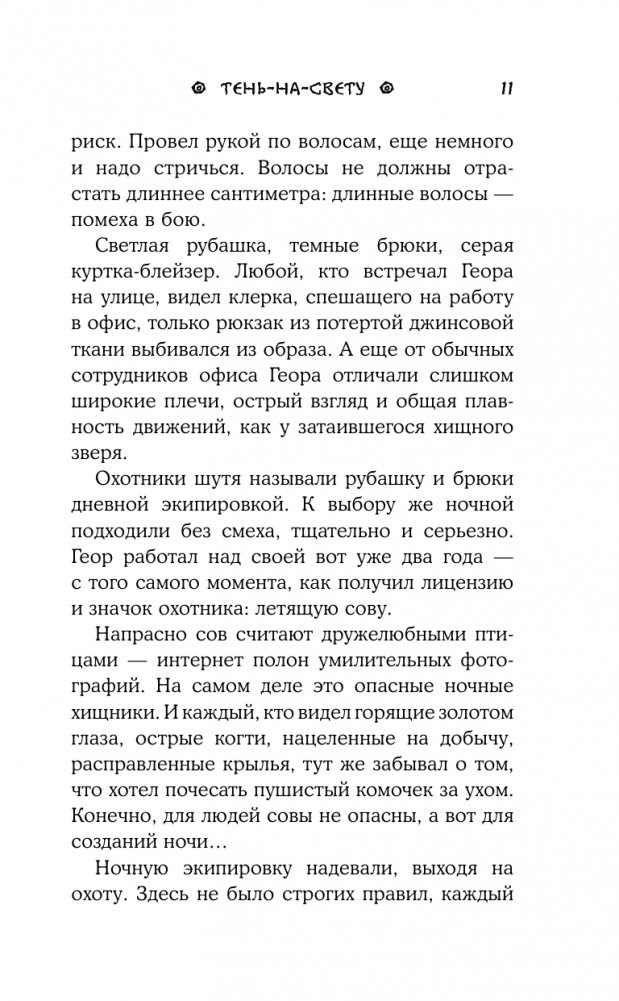 Создания ночи живут среди нас. Все, кто являлся людям в кошмарах. Но только это не сон. Бойтесь, возможно, завтра они придут за вами! Созданиям ночи издавна противостоит Лига мастеров: только охотники могут встать на пути кровожадных тварей. Геор – охотник за чудовищами, Тень-на-свету, и у него с созданиями ночи свои счеты. Принципы Геора просты: жить, чтобы избавлять мир от монстров. Никаких сомнений, ведь у созданий ночи нет души. Но однажды случится нечто, что перевернет его разум, пошатнет веру и изменит жизнь…