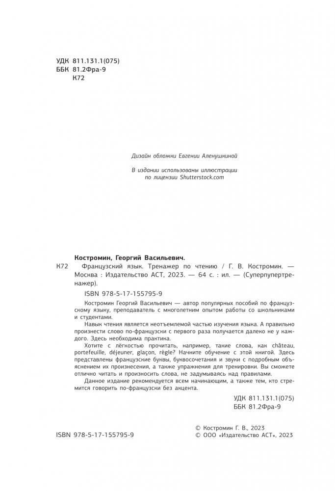Костромин Георгий Васильевич — автор популярных пособий по французскому языку, преподаватель с многолетним опытом работы со школьниками и студентами.