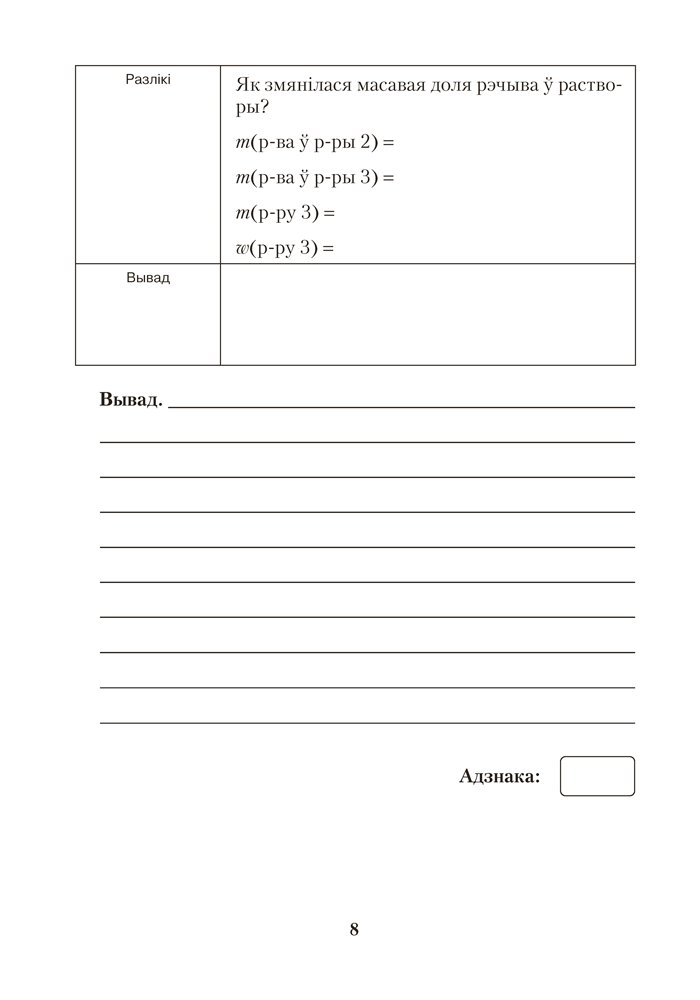 Сшытак з’яўляецца часткай вучэбна-метадычнага комплексу па хіміі для 9 класа. У выданні змяшчаюцца практычныя работы і лабараторныя доследы, выкананне якіх прадугледжана вучэбнай праграмай, прапануюцца рацыянальныя і эфектыўныя спосабы іх афармлення. Пасля кожнага лабараторнага доследу прыводзяцца рознаўзроўневыя заданні для самастойнага замацавання ведаў.