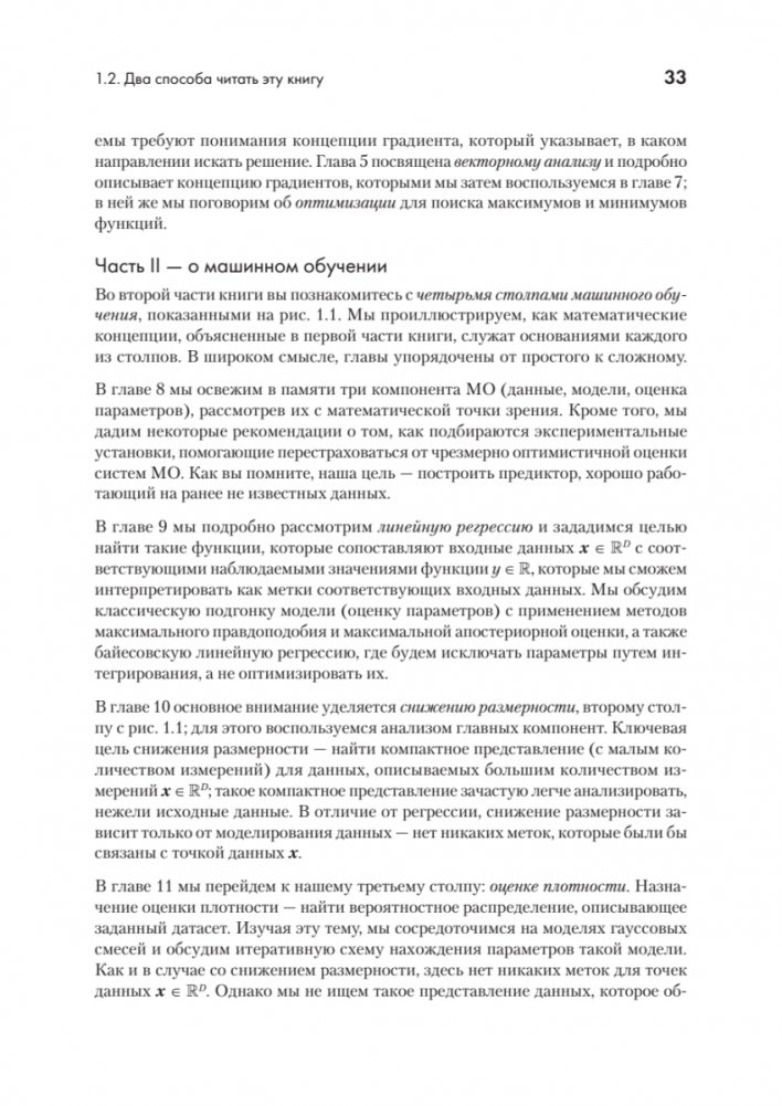 Фундаментальные математические дисциплины, необходимые для понимания машинного обучения, — это линейная алгебра, аналитическая геометрия, векторный анализ, оптимизация, теория вероятностей и статистика. Традиционно все эти темы размазаны по различным курсам, поэтому студентам, изучающим data science или computer science, а также профессионалам в МО, сложно выстроить знания в единую концепцию.