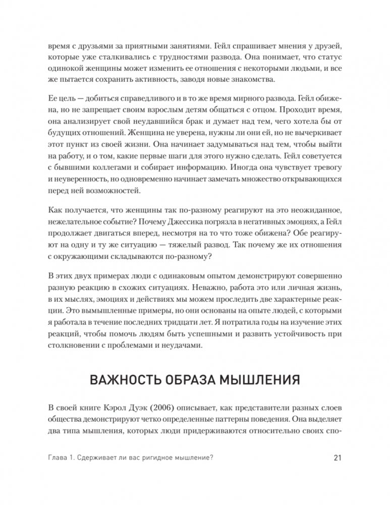 В своей более чем двадцатилетней практике Элейн Эллиотт-Москва наблюдала, что далеко не все люди, стремящиеся к саморазвитию, достигают успеха. Она обнаружила, что дело не только в намерении и мотивации человека, но и в том, какое у него мышление. Книга помогает читателям избавиться от самоограничивающих установок и убеждений ригидного мышления и заменить их мышлением роста, которое повысит устойчивость и уверенность в себе, сформирует основу для изменения жизни. В книге также представлено множество практик и упражнений из КПТ.