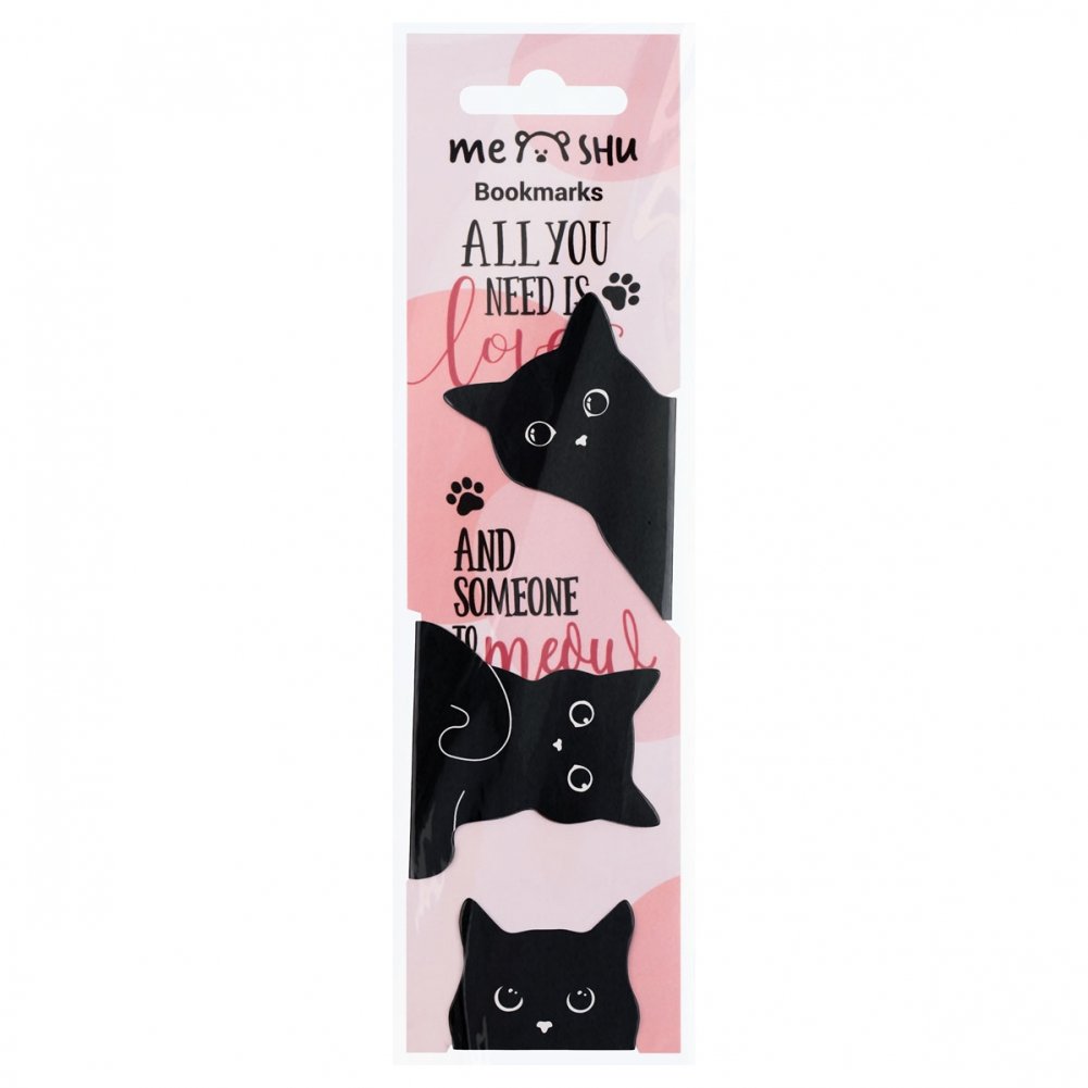 Закладки магнитные для книг, 3 шт., MESHU "Black cat". Арт. MS_47789