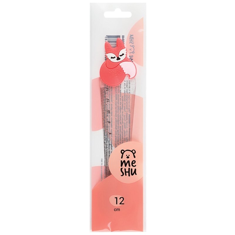 Линейка с топпером, 12 см, MESHU "Fox", пластиковая, прозрачная, европодвес. Арт. MS_36848