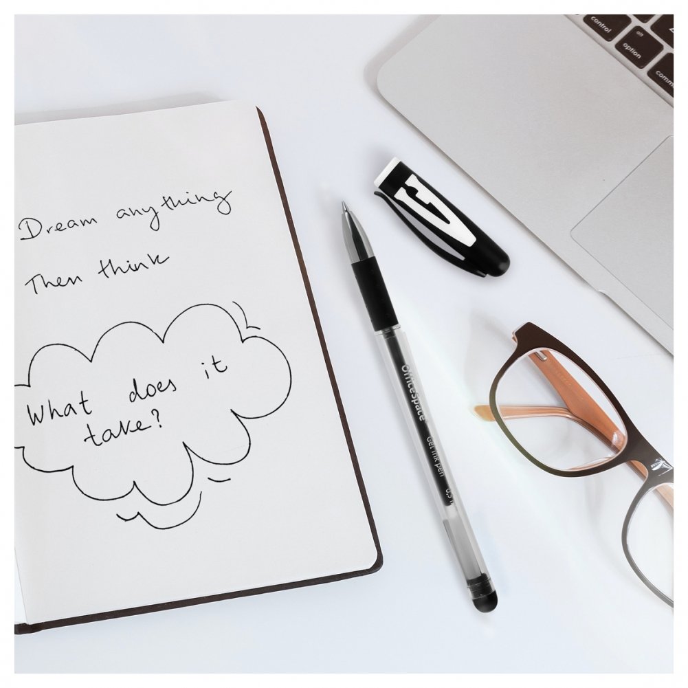 Гелевая ручка OfficeSpace – это удобство в использовании и отличное качество. Внутри ручки в прозрачном пластиковом корпусе – черные гелевые чернила, которые ярко пишут на бумаге. Есть колпачок с клипом – ручку можно закрепить на одежде или тетради. Ручка комфортно лежит в руке благодаря резиновому грипу в зоне хвата. Диаметр пишущего узла 0,5 мм, благодаря чему получается тонкая и аккуратная линия.