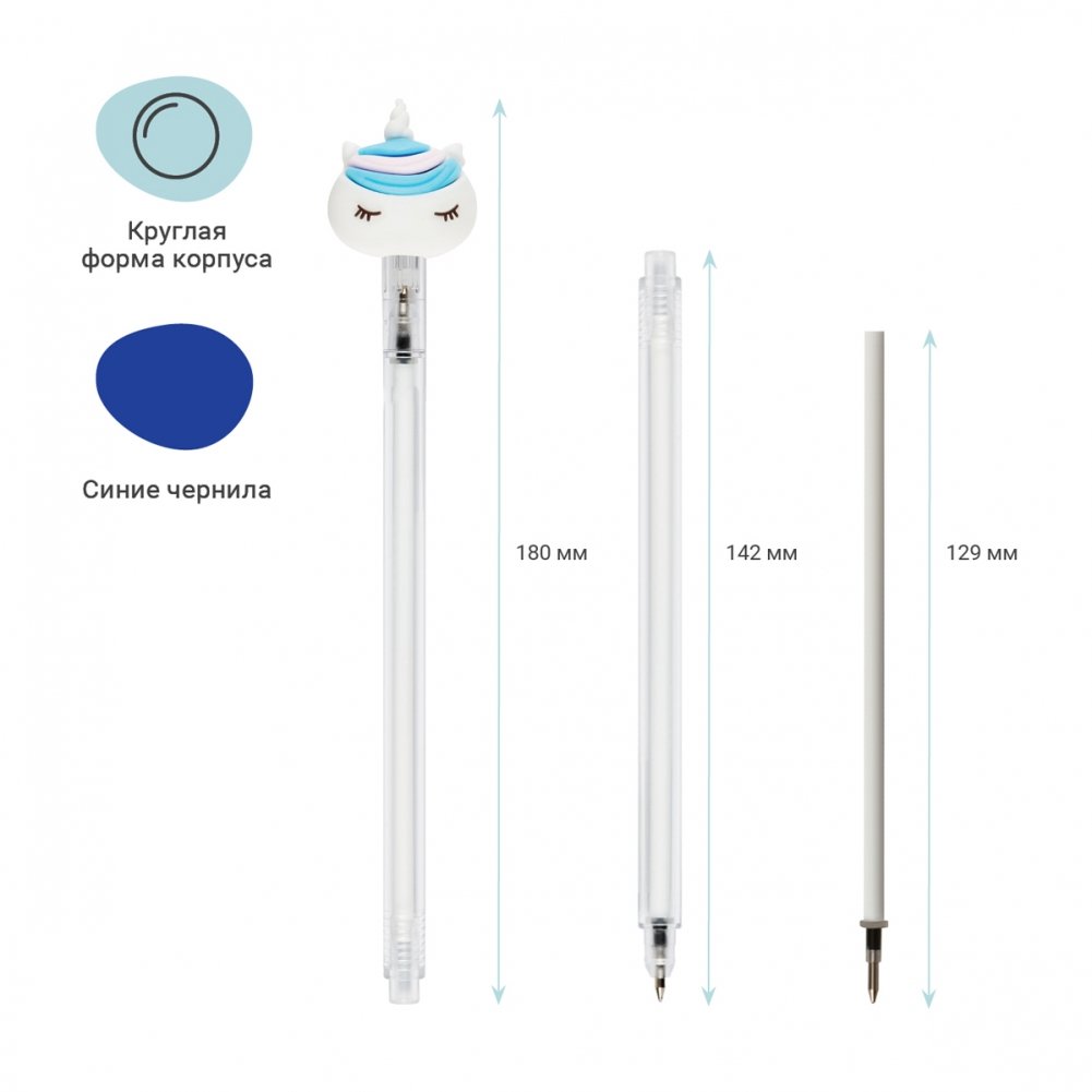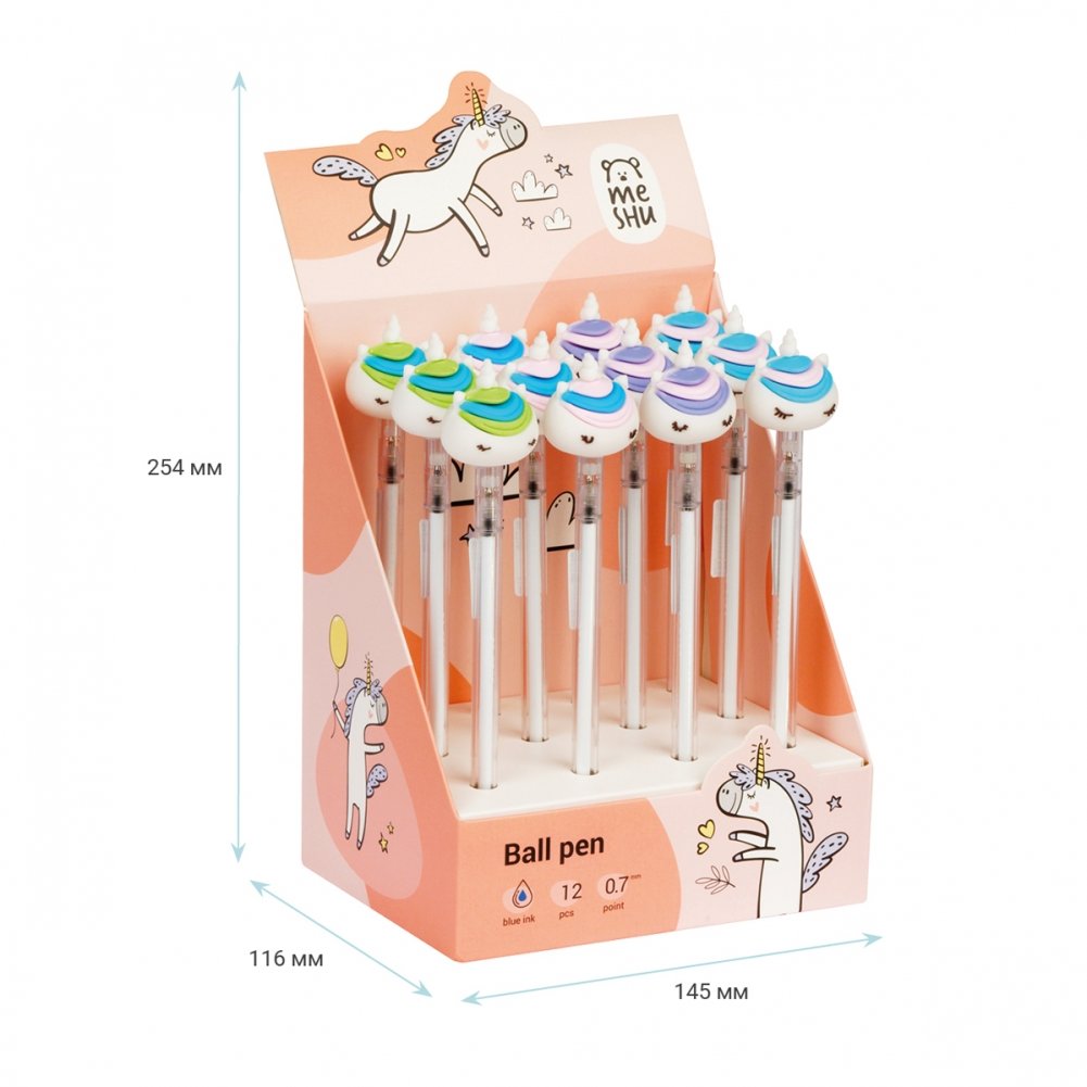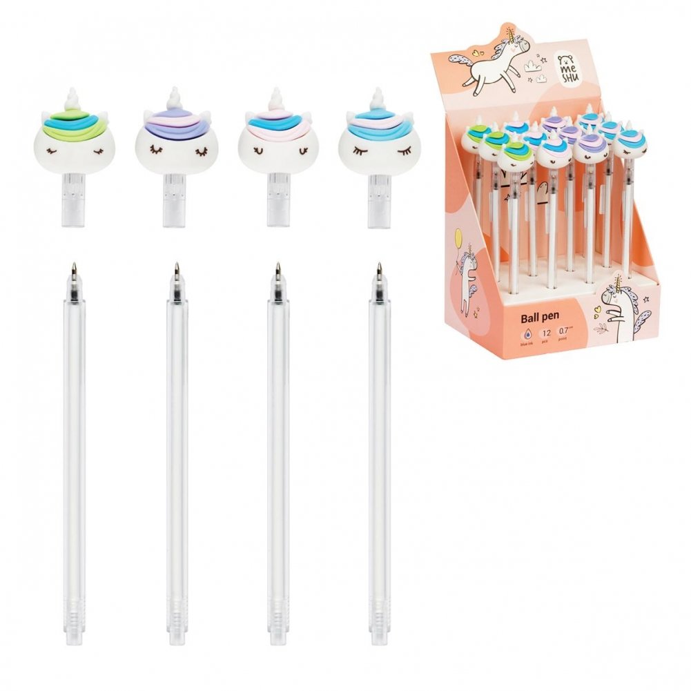 Ручка шариковая MESHU "White Unicorn", синяя, 0,7 мм, корпус ассорти, с топпером. Арт. MS_02613