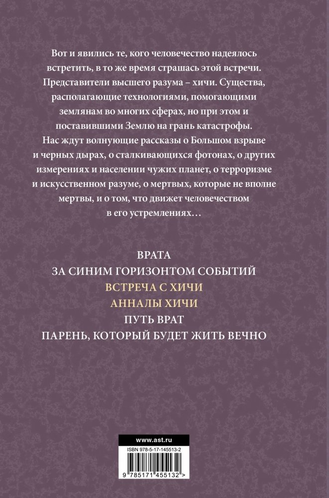 Вот и явились те, кого человечество надеялось встретить, в то же время страшась этой встречи. Представители высшего разума – хичи. Существа, располагающие технологиями, помогающими землянам во многих сферах, но при этом и поставившими Землю на грань катастрофы. Нас ждут волнующие рассказы о Большом взрыве и черных дырах, о сталкивающихся фотонах, о других измерениях и населении чужих планет, о терроризме и искусственном разуме, о мертвых, которые не вполне мертвы, и о том, что движет человечеством в его устремлениях…