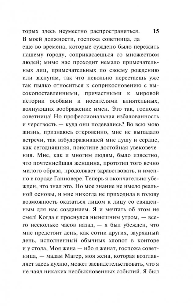 "Лотта в Веймаре" — изящный и увлекательный роман великого Томаса Манна, в котором глубокие размышления о человеке искусства, о его нередко болезненном существовании в реальном мире и о подлинном смысле жизни тесно переплетаются с интересным и немного ироничным сюжетом — встречей в Веймаре уже немолодого и прославленного Гете со своей бывшей возлюбленной… Была ли эта встреча в реальности? И если да — то какой она была? Неизвестно. Но в романе Томаса Манна правда искусства важнее правды истории.