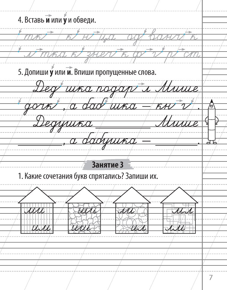 Пособие содержит упражнения для отработки написания букв, слов, предложений и текстов с акцентом на сложных элементах и соединениях в буквосочетаниях. Выполнение заданий способствует развитию зрительного восприятия, зрительно-моторной координации и зрительной памяти, а также улучшению и исправлению почерка.