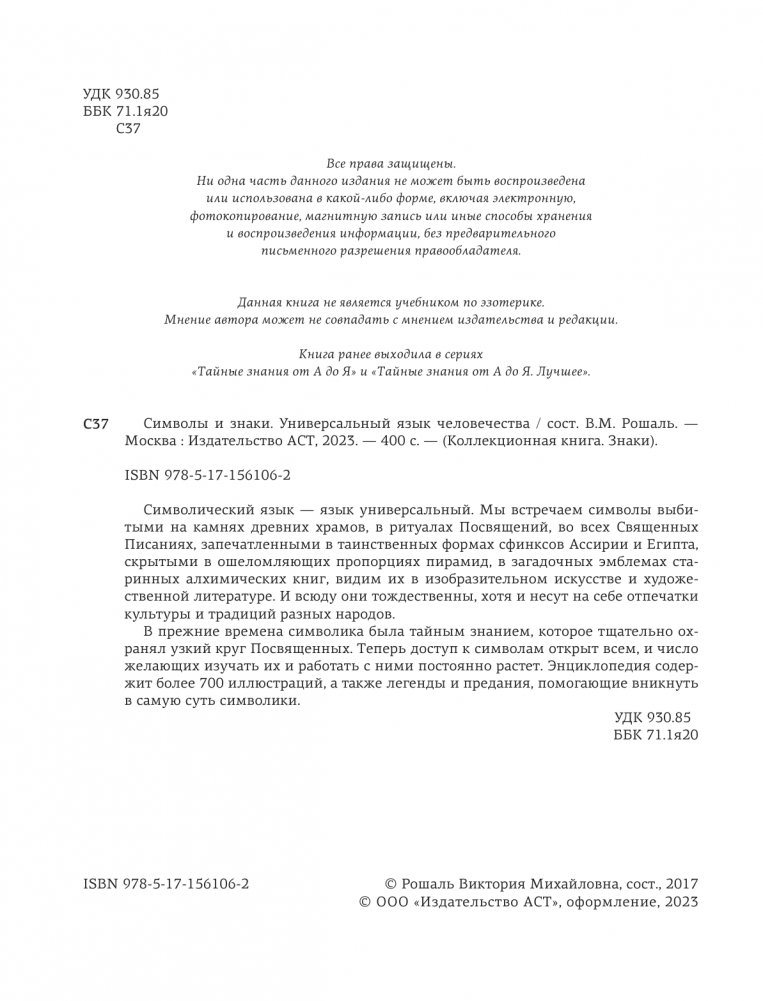 В прежние времена символика была тайным знанием, которое тщательно охранял узкий круг Посвященных. Теперь доступ к символам открыт всем, и число желающих изучать их и работать с ними постоянно растет. Энциклопедия содержит более 700 иллюстраций, а также легенды и предания, помогающие вникнуть в самую суть символики.