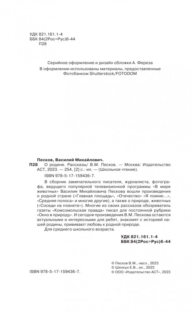 В сборник замечательного писателя, журналиста, фотографа, ведущего популярной телевизионной программы "В мире животных" Василия Михайловича Пескова вошли произведения о родной стране ("Главная площадь", "Отечество" "Я помню…", "Средняя полоса" и многие другие), а также о природе, животных ("Соседи на планете"). Многие из своих рассказов обозреватель газеты "Комсомольская правда" писал для постоянной рубрики "Окно в природу". И сегодня произведения В.М. Пескова остаются актуальными и интересными для ребят, знакомят со историей нашей родины, прививают любовь к родной природе.