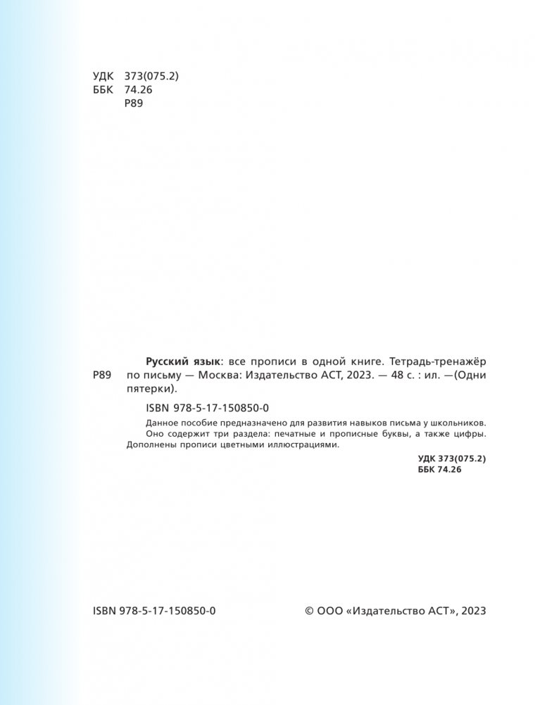 Русский язык: все прописи в одной книге. Тетрадь-тренажёр по письму