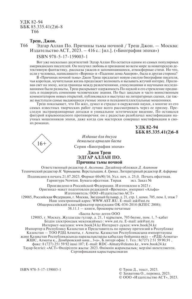 Треш показывает, что По жил, думал и страдал в окружении науки, а многие из его самых известных творческих работ лучше всего рассматривать через ее призму. Преследуя экстраординарные догадки и уникальное эстетическое видение, По оставался фигурой взрывоопасного противоречия: он с радостью разоблачал мистификации научных мошенников эпохи, даже когда сам мастерски совершал их в своих романах.