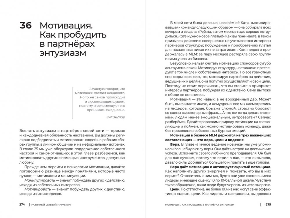 И неудивительно, что автору это удается. Ведь он делится опытом каждого дня, самым наболевшим, развенчивает расхожие предубеждения, отвечает на насущные вопросы. Поэтому, если вы обдумываете возможность заняться сетевым маркетингом или даже если вы всего лишь ищете нестандартные подходы в рамках более традиционного бизнеса, — эта книга будет вам полезна на 100%!