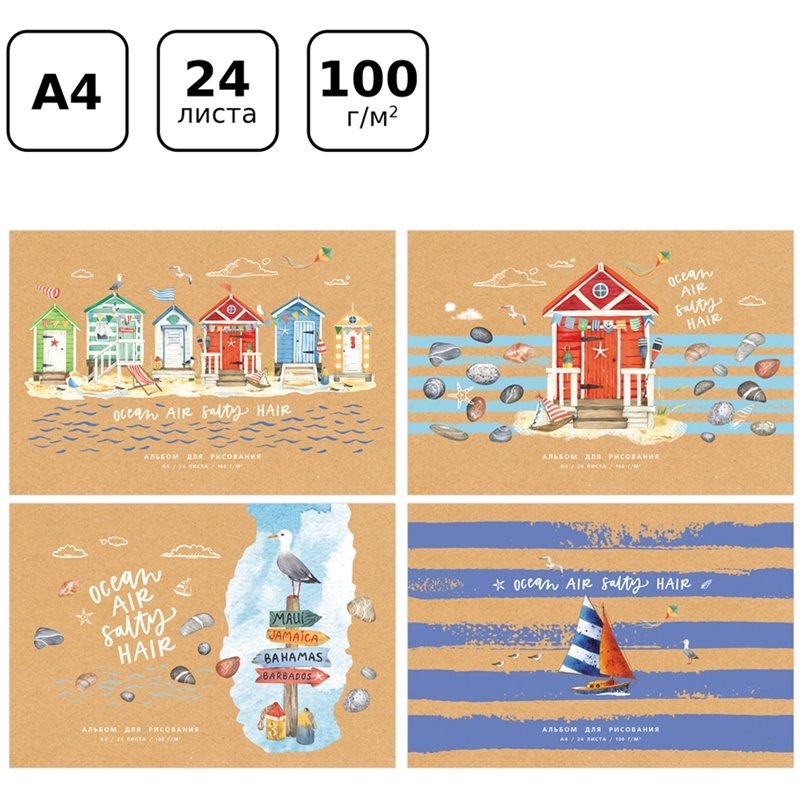 Альбом для рисования 24 л., А4, на скрепке BG "Морской бриз". Арт. АР4ск24 10917