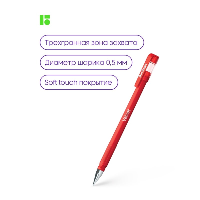 Ручка гелевая Berlingo "Velvet" красная, 0,5 мм, прорезиненный корпус. Арт. CGp_50127