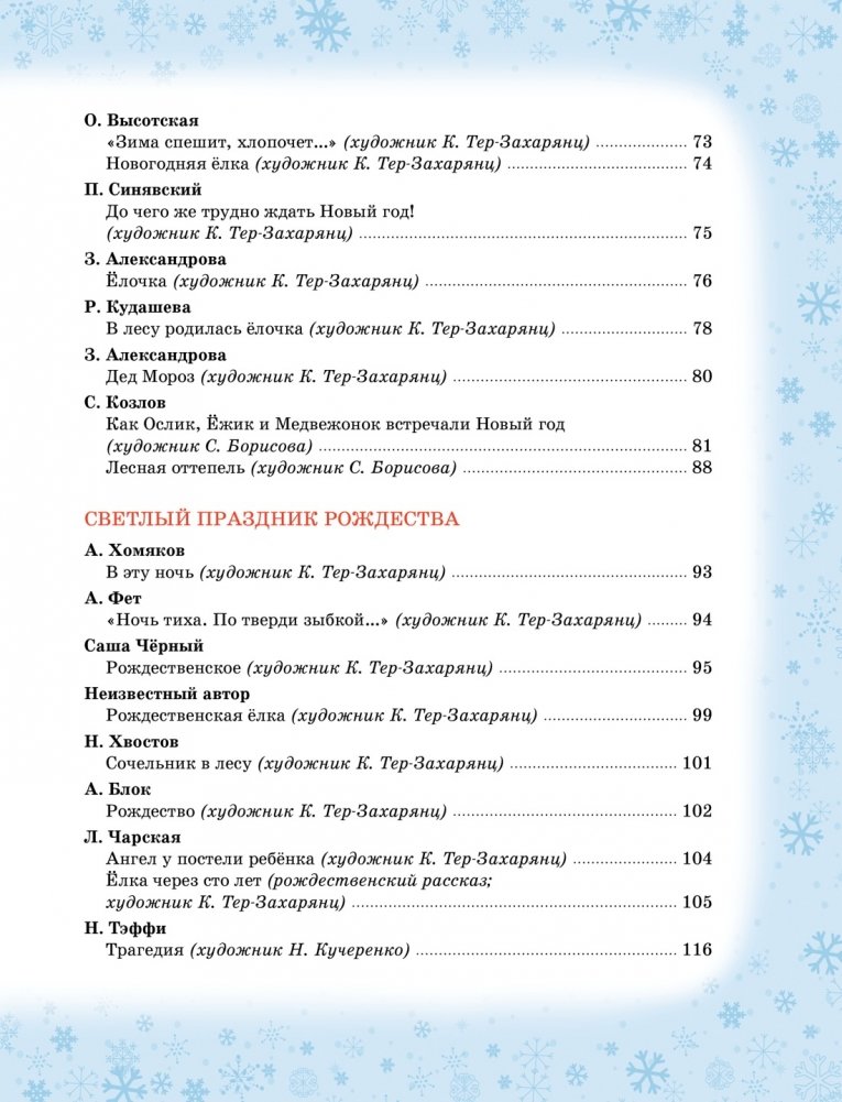 В сборник входят стихи, рассказы и сказки про любимые зимние праздники – Новый год и Рождество. По традиции все готовятся к ним заранее и с особым волнением выбирают подарки родным и друзьям. И пусть среди множества долгожданных подарков будет и эта красивая книжка про волшебство и чудеса новогодней и рождественской ночи.