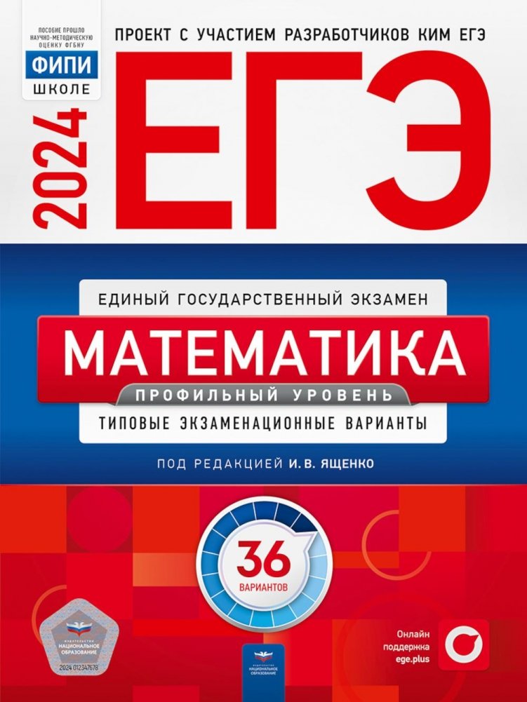 • 36 типовых экзаменационных вариантов, составленных в соответствии с проектом демоверсии КИМ ЕГЭ по математике профильного уровня 2024 года;