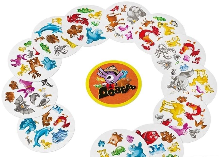 "Доббль: Животные" – это простая, весёлая и азартная игра на внимательность и скорость реакции, которая претерпела уже не одну итерацию, и всё ещё остаётся популярной настолкой! Как бы ни менялось оформление игры "Доббль", в основе её лежит всегда один и тот же принцип – найти на двух разных карточках совпадения быстрее остальных игроков. Именно за эту простоту правил игра и обрела широкую популярность. Посудите сами: легко объяснить детям, ещё и помогает развить внимательность и реакцию, а соревновательный дух поддерживает азарт в каждом игроке. Как можно понять из названия, в этой версии игры вам предстоит искать на карточках совпадающих животных. Нашли двух медведей? Кричите! И пусть победит внимательнейший!