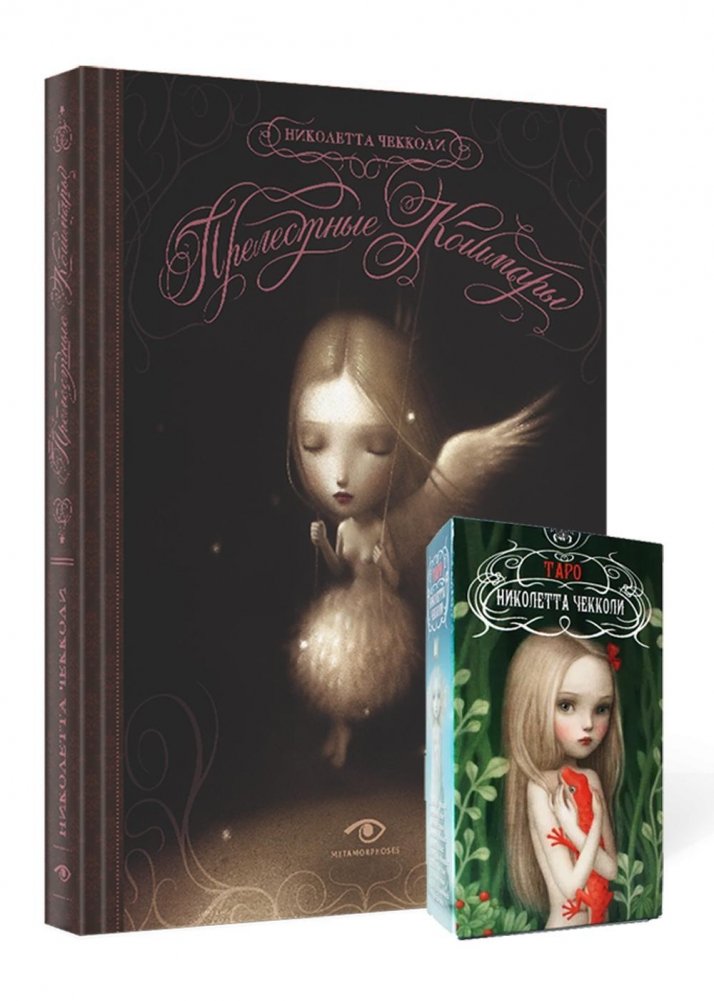 Милые создания Николетты Чекколи - хрупкие и холодные. Укротительницы, сирены, амазонки… Эфирные, стильные и ужасающие. Мир, который перекликается с сюрреалистическими идеями, где двигаются девочки-куклы с фарфоровой кожей. Мечтательные, поэтичные, чудесные и чудовищные персонажи из мира снов, кошмаров и фантазий автора. Этот сказочный мир одновременно является и миром арканов Таро. Когда вы читаете какую-либо карту, вы путешествуете от берега логики в море интуиции и воображения. В комплект входят арт-бук Николетты Чекколи "Прелестные кошмары" и колода карт Таро Николетты Чекколи (78 карт размером 66 х 120 мм + инструкция).