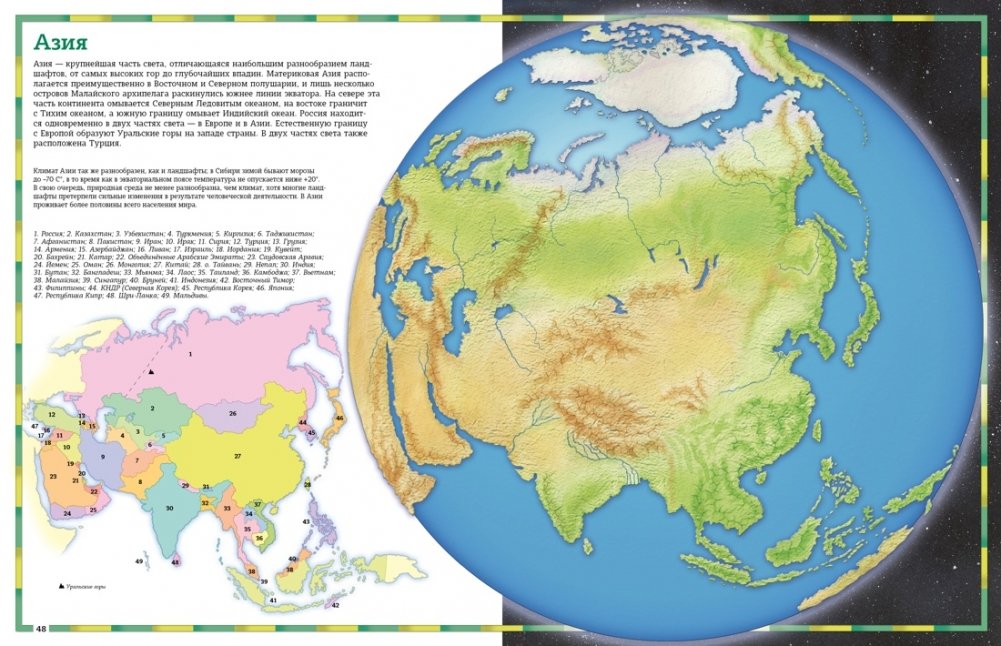 Листая этот прекрасно иллюстрированный атлас, вы совершите увлекательное кругосветное путешествие: исследуете самые отдалённые уголки планеты, узнаете множество любопытных фактов о достопримечательностях разных стран, оцените красоту уникальных природных объектов и необычных древних сооружений. На картах отмечены полезные ископаемые, памятники архитектуры, а также животные, обитающие в разных природных зонах.