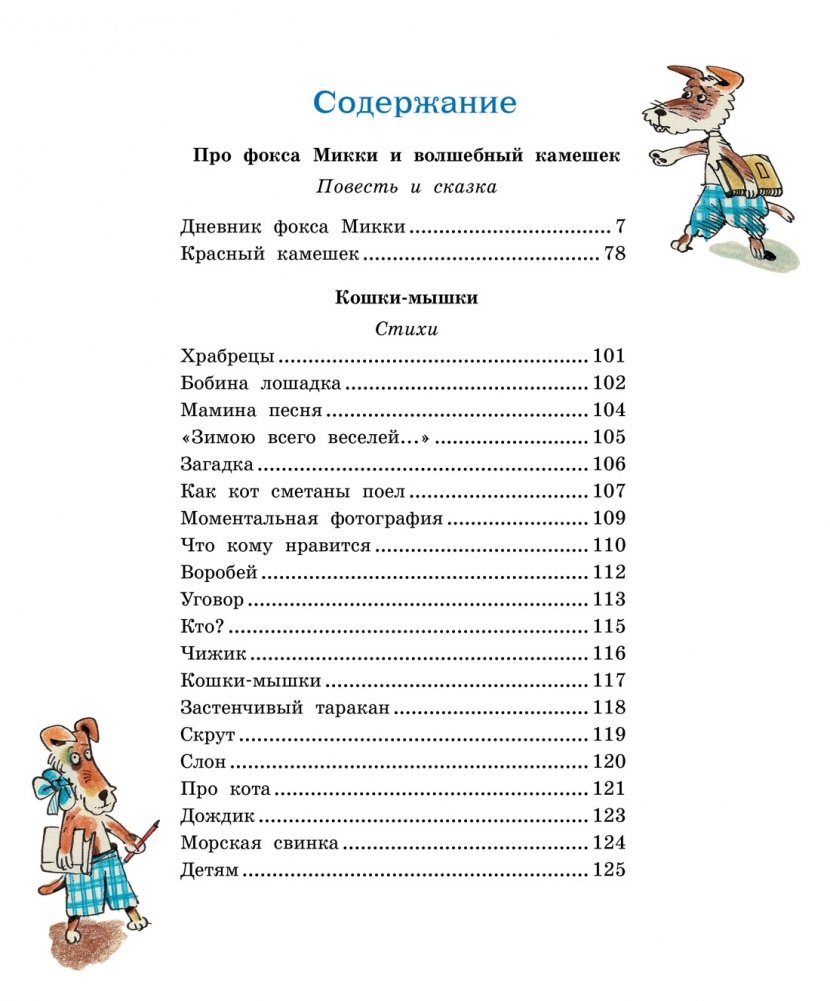 Саша Чёрный – знаменитый русский поэт Серебряного века, получивший мировую славу в том числе и как автор произведений для детей. Для них он писал повести, сказки, рассказы, стихи. Одна из самых известных его повестей – «Дневник фокса Микки», в которой речь идёт от лица забавного пса, обладающего великолепным чувством юмора. В ироничной манере Микки рассказывает о своей полной событий собачьей жизни, о маленькой хозяйке Зине, обо всём, что его окружает. Дети обязательно полюбят этого необыкновенного рассказчика. Кроме того, в книгу вошли сказка «Красный камешек» и весёлые, озорные стихи.