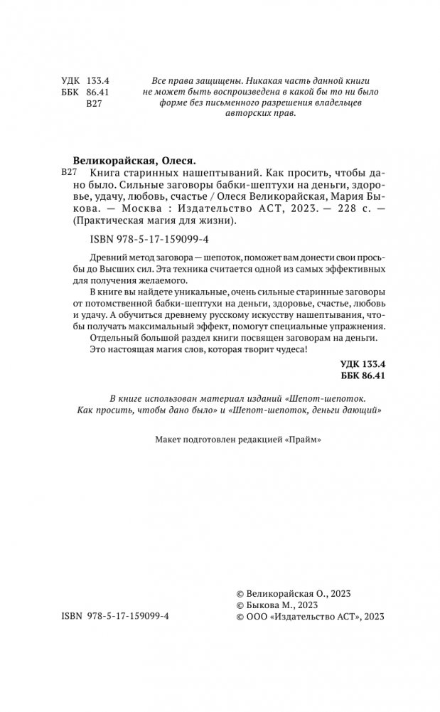 В книге вы найдете уникальные, очень сильные старинные заговоры от потомственной бабки-шептухи на деньги, здоровье, счастье, любовь и удачу. А обучиться древнему русскому искусству нашептывания, чтобы получать максимальный эффект, помогут специальные упражнения.